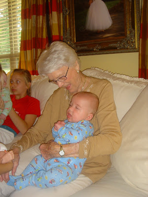 Pogee wanted to see the babies & they didn't go to the banquet, so we stopped by my sister's house yesterday afternoon so that they could see their Pogee. She couldn't believe how they had grown! Here are a few cute pictures!! We love you Pogee & are so glad you & Kyle came last night!!!
